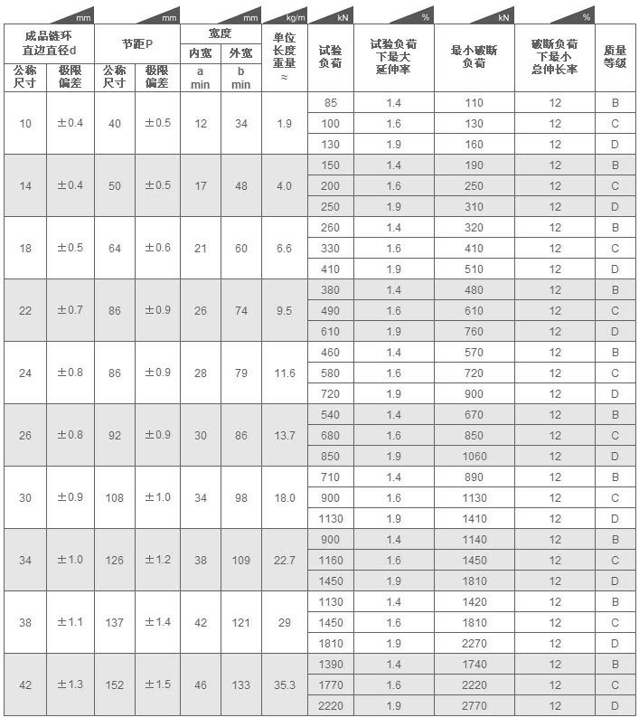 礦用高強度圓環(huán)鏈條參數(shù):